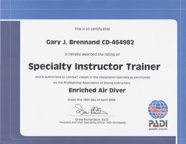 Enriched Air Instructor Trainer