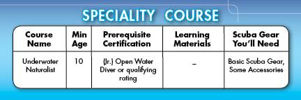 The Underwater Naturalist Specialty course is one that should interest nearly every diver, as the reason most people dive is to observe the aquatic environment. It makes diving so much more interesting if you know what you're looking at and why it's at that particular site.