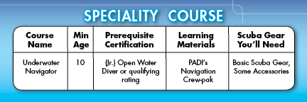 Underwater navigation can be challenging, but in the PADI Underwater Navigator Specialty course, you master the challenge. You learn the tools of the trade, including navigation via natural clues and by compass.